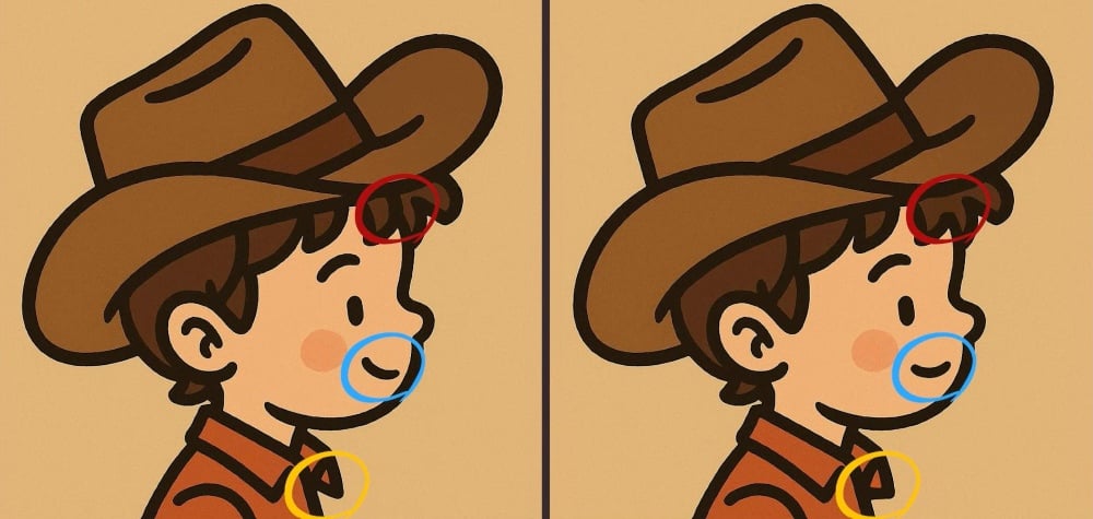 Peki bir sonraki mücadeleye hazır mısın? Kovboy şapkası takan çocuğun iki resmine yakından bakın. İlk bakışta aynı görünebilirler ancak 3 küçük farkı gizlerler. Hepsini 51 saniyede bulabileceğinizi mi düşünüyorsunuz? Deneyin ve görme keskinliğinizi test edin!
