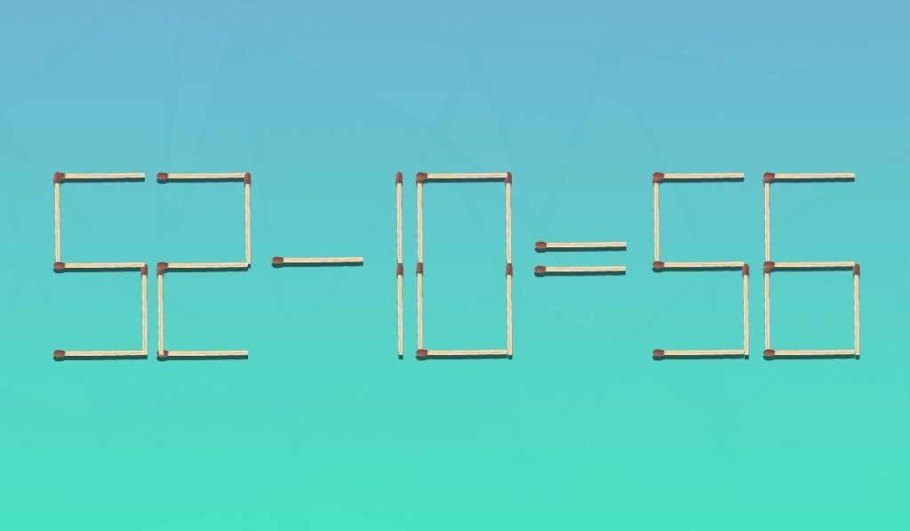 Aşağıda 52-10=55 eşitliğinin kibritlerle düzenlendiği bir görsel göreceksiniz. Burada bir şeylerin yanlış olduğu açık. Hatayı düzeltmek için iki eşleşmeyi yeniden düzenlemeniz gerekir.