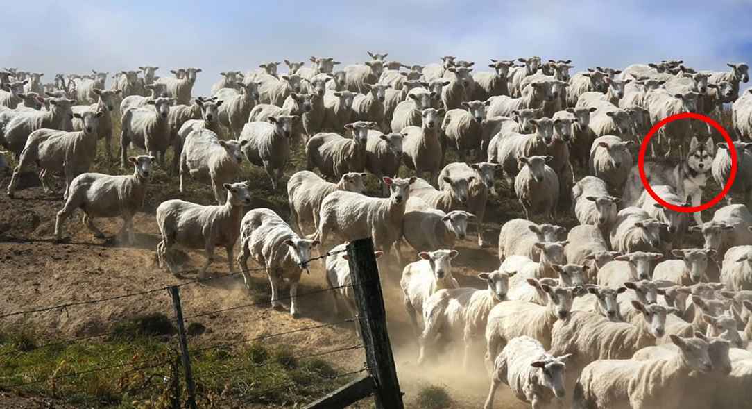Köpeğinizi bulamadınız mı? Bir ipucu alın: sağa bakın, orada iki koyunun arasında duran bir köpek göreceksiniz. Doğru cevap daire içine alınmıştır.