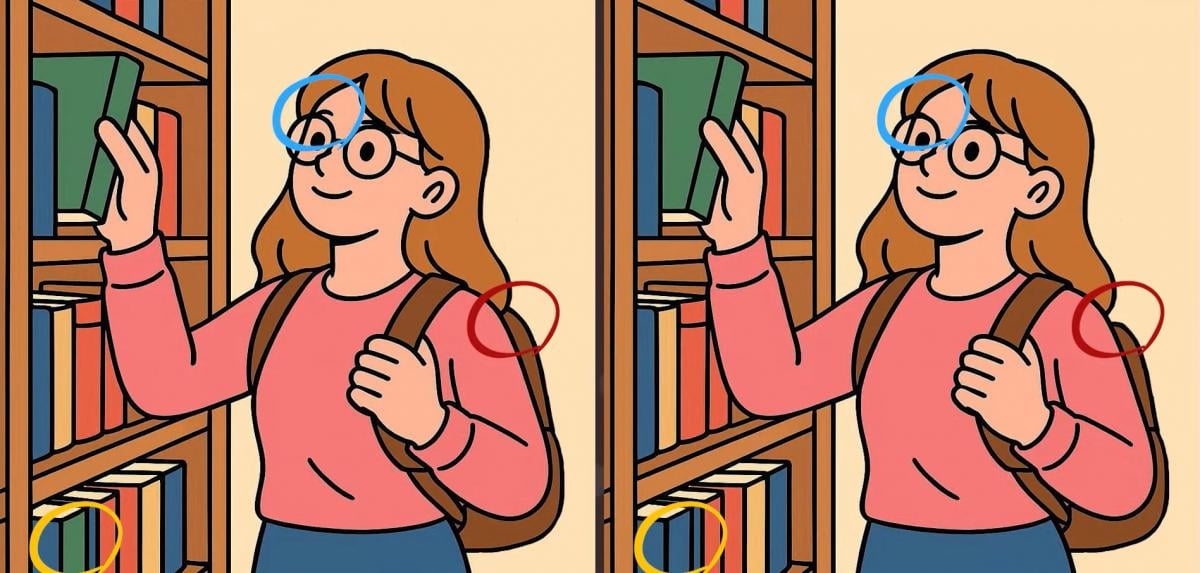 Peki bir sonraki mücadeleye hazır mısın? Kütüphanede kitap seçen bir kızın iki resmine yakından bakın. İlk bakışta aynı görünebilirler ancak 3 küçük farkı gizlerler. Hepsini 19 saniyede bulabileceğinizi mi düşünüyorsunuz? Deneyin ve görme keskinliğinizi test edin!