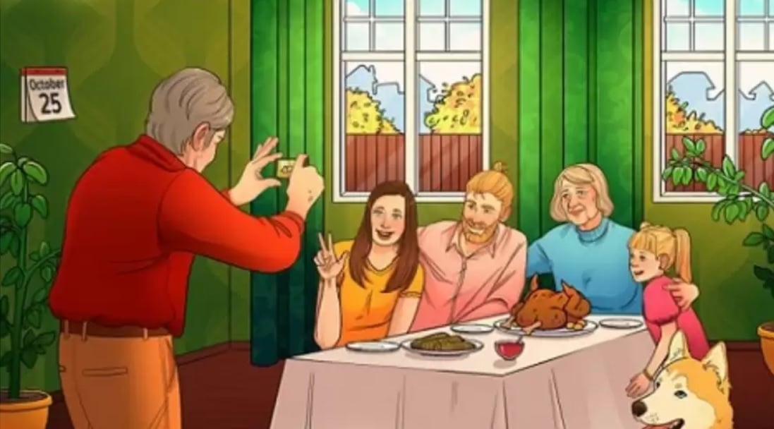 Takvimdeki tarih 22 Ekim olmalı. Resimde, bu bayramın geleneksel yemeği olan kızarmış hindinin de ima ettiği gibi, Şükran Günü’nü kutlayan bir aile görülüyor. Ukrayna’da Şükran Günü 22 Ekim’e denk geliyor.