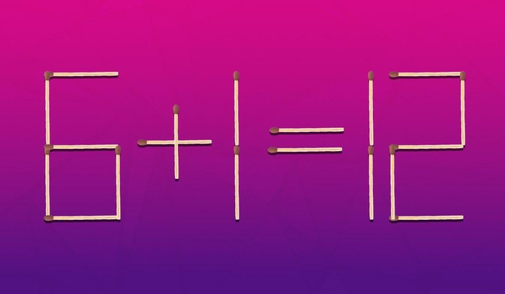 Aşağıda 6+1=12 eşitliğinin kibritler kullanılarak ortaya konduğu bir kolaj göreceksiniz. Burada bir hata olduğu açıktır, çünkü bu sayıların toplamı 7’dir.