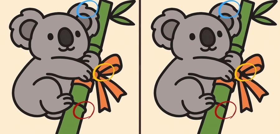 Peki bir sonraki mücadeleye hazır mısın? Bambuyu kucaklayan bir koalanın iki resmine yakından bakın. İlk bakışta aynı görünebilirler ancak 3 küçük farkı gizlerler. Hepsini 33 saniyede bulabileceğinizi mi düşünüyorsunuz? Deneyin ve görme keskinliğinizi test edin!